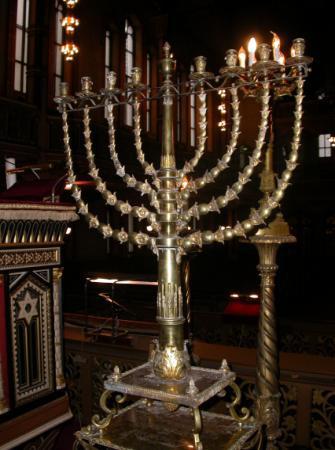 As you know, a Synagogue may not have a Menorah, the original seven branches candelabrum that belonged to the Temple and that is the emblem of the State of Israel.