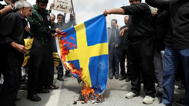 The Muslim world has been burning flags of countries without any police or political interference since several years. There is now a difference when it comes to holy books, and there is no law in Sweden specifically prohibiting the burning or desecration of the Koran or other religious texts.